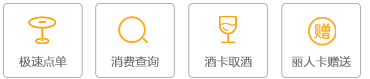开台、普通点菜、赠送点菜、消费查询、酒卡取酒、取消品、丽人卡赠送、酒卡取酒。
