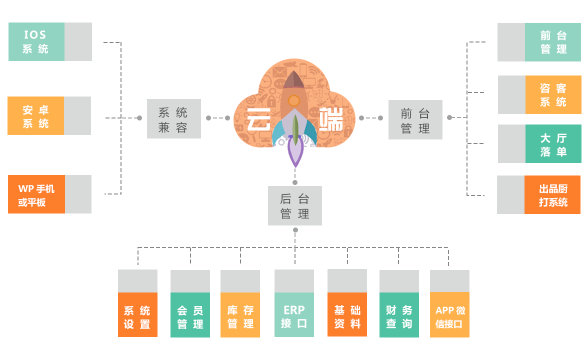 客人预定、微信定台、短信通知、预定过期提醒;接受预定、保留台位、开台、取消预定等操作。
